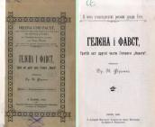 The gallery of I. Franko's autographs and editions is replenished with title page of the first edition translation of tragedy «Helen and Faust» by J.W.Goethe (1899). |